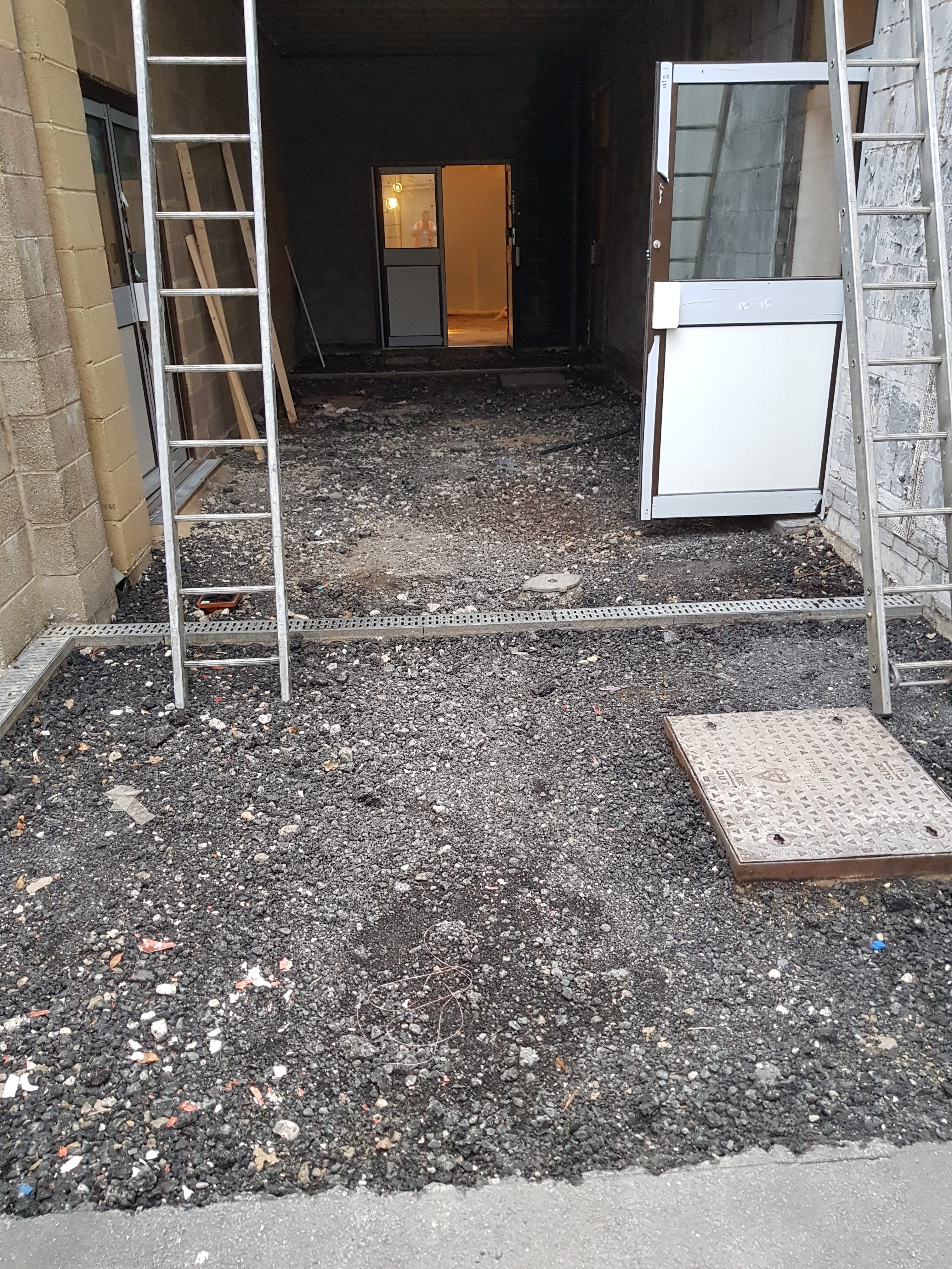 Plastic or polymer-cement channel with heel safety grated channels can be connected direct to the storm water drainage system, or to a soak away via a French drain system.
