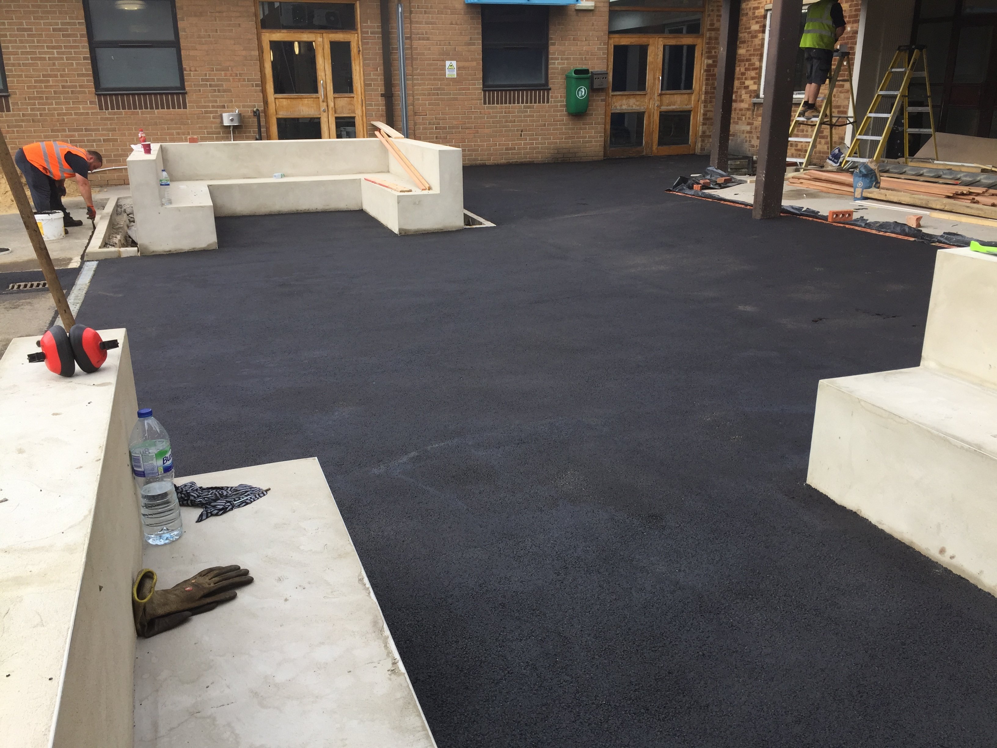 Helps minimise grazes and minor injuries whilst school children play. Fine asphalt is typically used on playgrounds.